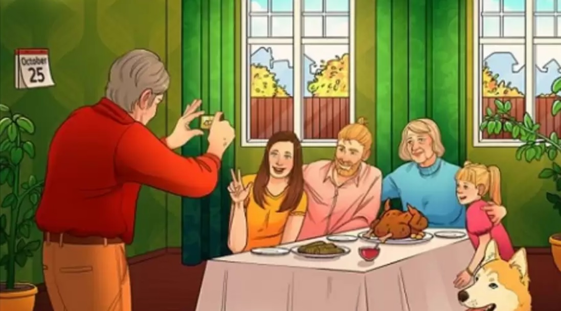 Kalenterin päivämäärän tulisi olla 22. lokakuuta. Kuvassa perhe juhlii kiitospäivää, kuten kalkkunanpaisti, tämän juhlan perinteinen ruokalaji, vihjasi. Ukrainassa kiitospäivä on 22. lokakuuta.