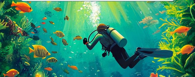 Kuvassa sukeltaja vedenalaisessa maisemassa. Sinun tehtäväsi on tutkia kuva huolellisesti ja löytää siitä karkea virhe. Yksi näytetyistä osista ei ole mahdollinen.