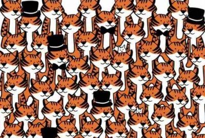 Ratkaise hauska, mutta erittäin vaikea pulma – sinun täytyy yrittää löytää neljä kissaa kerralla monien punaisten ja valkoisten mustien hattujen joukosta.